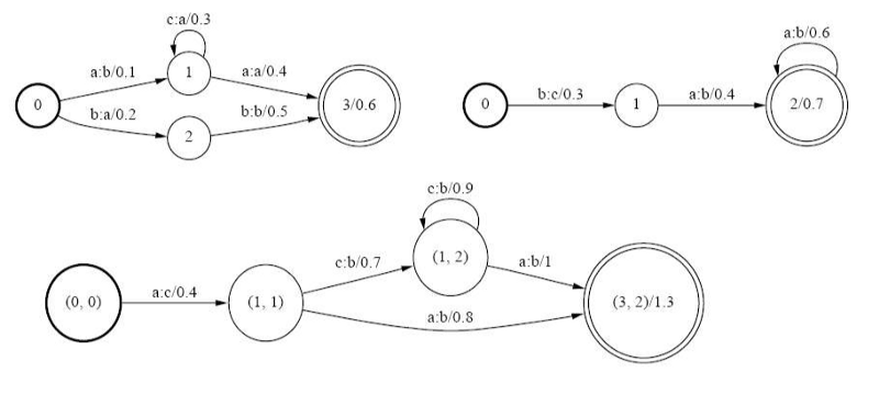 - Initial state in the new WFST are formed by combining the initial states of the old WFSTs into pairs.